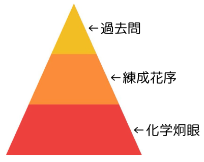 僕は、高校2年の終わりに受験勉強を始めた当時、自分の志望校に到達するためにこなすべき参考書を調べていると、難易度の振れ幅が大きく、段階を踏んで学習できる参考書が見つかりませんでした。そんな中出会ったのが化学炯眼と練成花序という教材でした。
